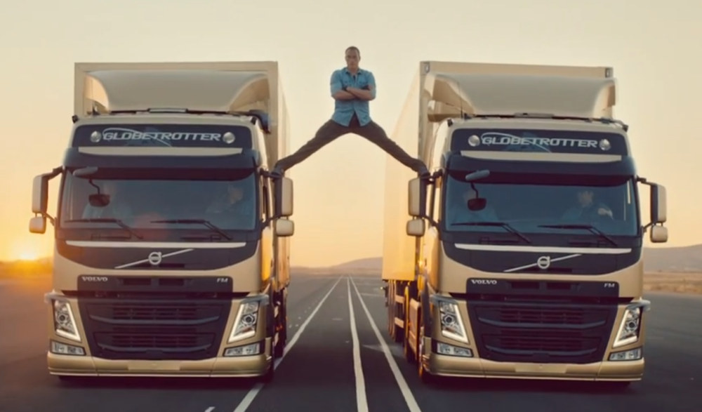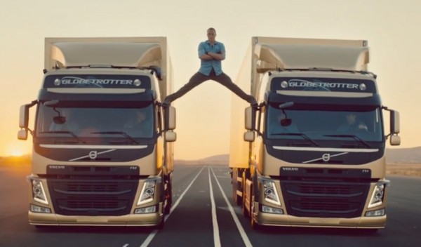 In this ad JCVM does a truly epic split between two moving Volvo FM trucks. Not sure how much of it is real and how much faked, but we have to say, it is damn impressive to watch: