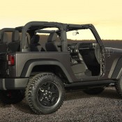 Unlike the original Willys Jeep, whose only luxury amenity was a first aid kit, the Wrangler Willys Wheeler is very well-appointed with tons of features and equipment. It is based on the Wrangler Sport and comes with Sirius satellite radio, Power Convenience Group and Premium Tire Pressure Monitoring System as standard. In terms of off-road hardware, you get Dana 44 rear axle with Trac-Lok limited-slip diff, BF Goodrich KM Mud Terrain LT255/75R17 tires, and of course Jeep’s Command-Trac 4×4 part-time with two-speed transfer case.