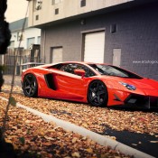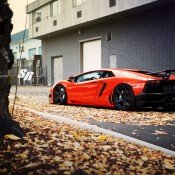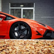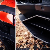 The wheels are ADV1 5.1SL in size 20×9 front and 21×12.5 rear, finished in matte black. They go really well with the fiery orange color of the exterior and match the dark finish of the new aero parts.