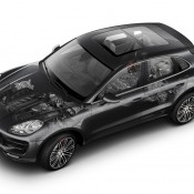 So let’s get to the details and see what’s what with the new Porsche Macan. The car will launch with three different versions, including Macan S, Macan Turbo, and Macan S Diesel. All models come as standard with Porsche Traction Management (PTM) active all-wheel drive and the Porsche PDK double-clutch transmission, and they all have V6 engines. Porsche Torque Vectoring Plus (PTV Plus) can be specified as well.