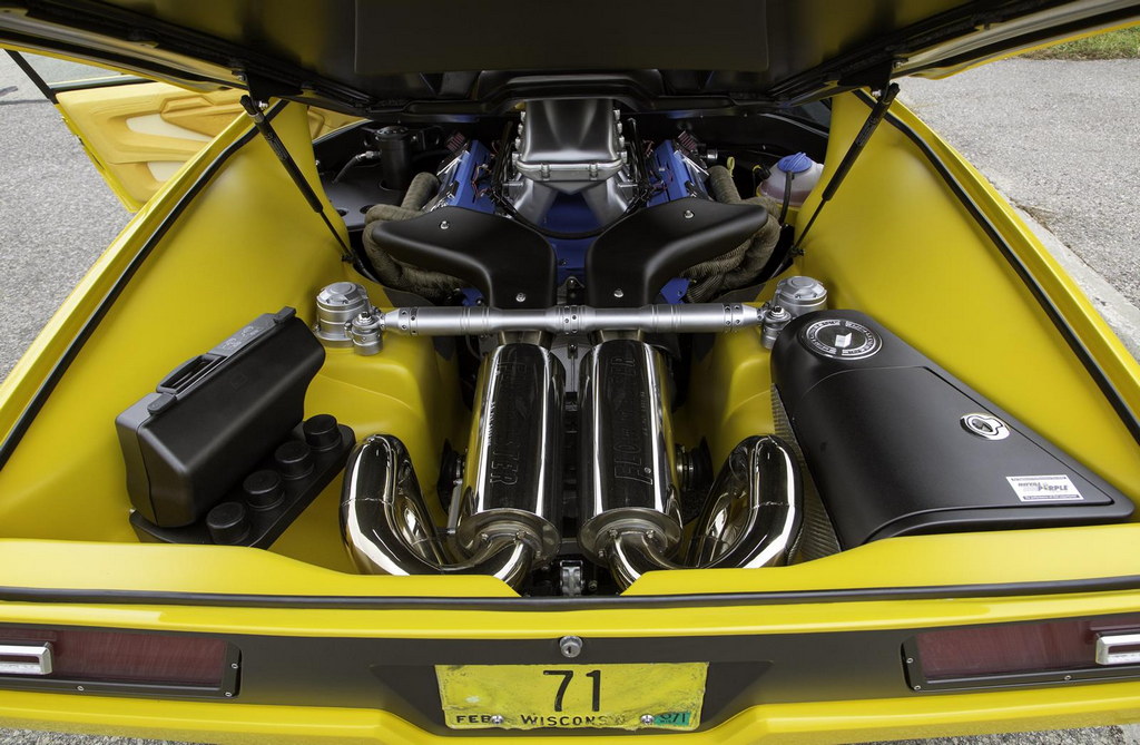 Mechanical mods are good, but unfortunately, Ringbrothers De Tomaso Pantera also features styling changes. For some reason they thought they can do better than the Italian artists who designed the car back in the 70s, and ended up kind of ruining the car’s classic lines by adding details like those large air intakes. The body and the interior is covered in a special shade of yellow.