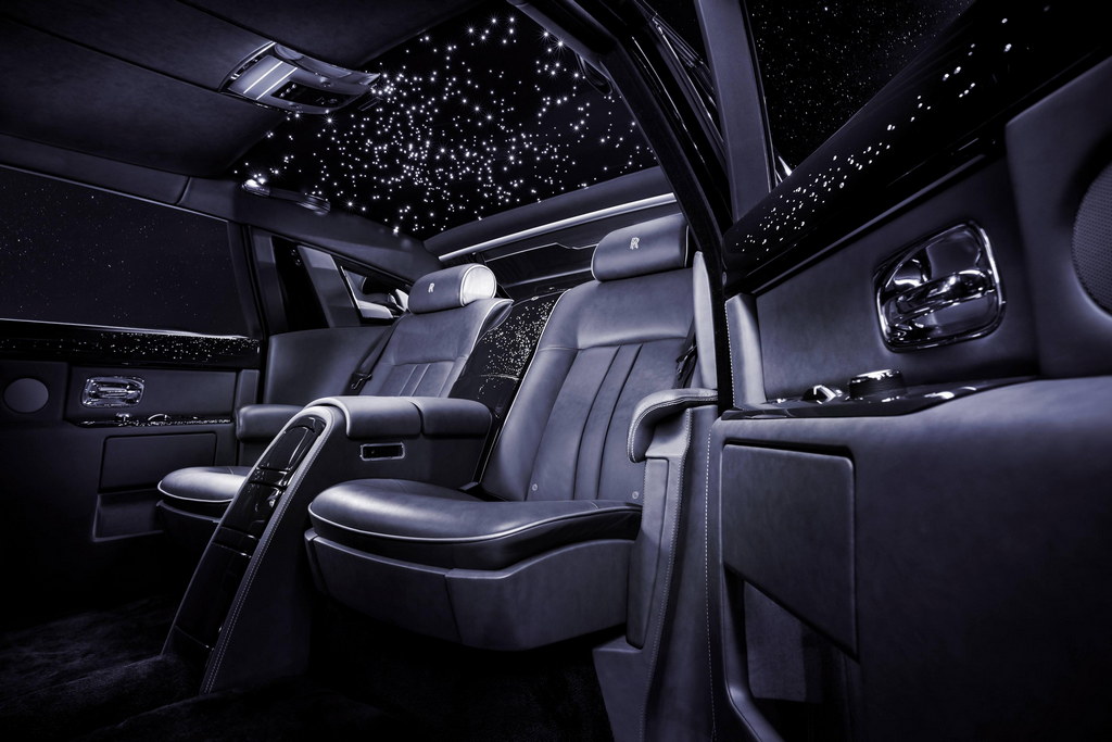 The name is given to the car because of the 446 diamonds that are meticulously hand-set into the door-cappings, centre console lid and rear-privacy divider, creating a celestial feel in the cabin. The exterior colour scheme evokes the night sky – integrating fine glass particles into the paint to achieve an alluring sense of depth and light. Celestial Phantom is based on the long wheelbase Phantom.