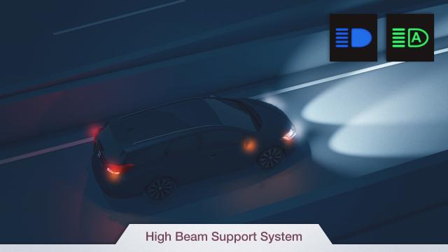 The High Beam Support System is another useful system, more suitable for open road driving. It works at speeds of more than 24mph to switch High Beam headlights on / off automatically depending on oncoming / preceding vehicles.