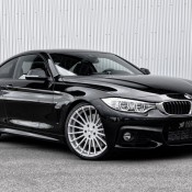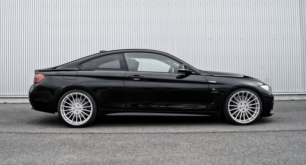 Hamann BMW 4 Series can be ordered two versions of the one-piece light Anniversary Evo and Evo Black Line alloy wheels, as seen in the pictures. For the suspension they offer progressive sport springs with either 20 or 30 mm lowering. Cars fitted with M sport suspension get lowered 10 mm less.