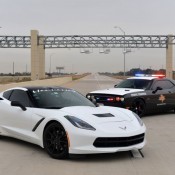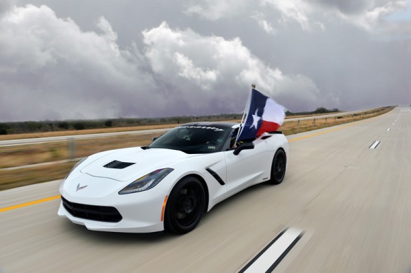 Every once in a while Texas state troopers team up with local tuner Hennessey Performance and close a nice piece of straight tarmac on Texas toll road for them, so they bring out and let loose their latest creations. The one they brought along this time is a Hennessey Corvette Stingray fitted with the naturally-aspirated HPE600 package.