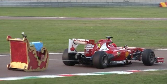 In what appears to be a moment of madness, Ferrari employees went head first in Holiday mood and decided to do something fun. They had access to a track, an F1 car, a sled full of gifts, and lots of red clothes. So have an educated guess what they did with them.
