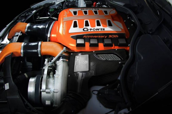 The meat of the G-Power Hurricane 337 package is the V8 SK II CS powertrain. It starts out as a normal 4.0 liter BMW M3 V8 engine, onto which G-Power installs an ASA T1-523 radial supercharger, High-Flow air intake including large racing air filter, a large volumetric intercooler system, and a titanium exhaust system.
