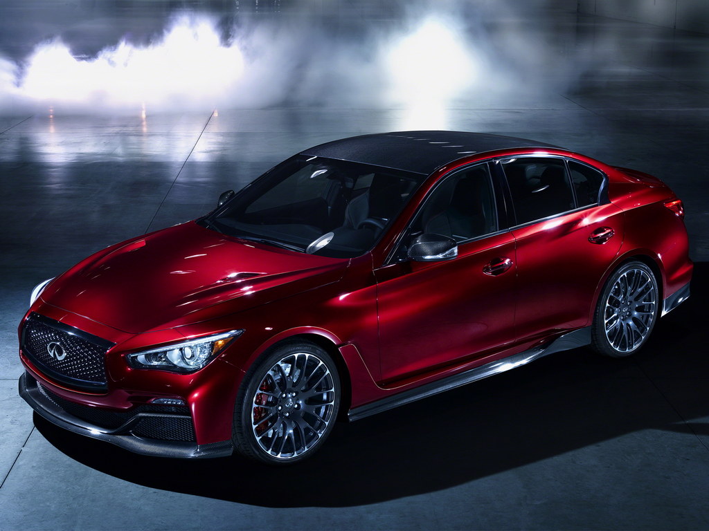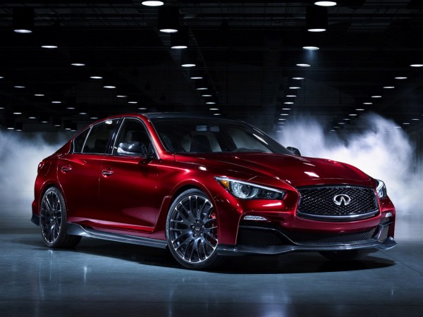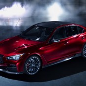 Inside, the Infiniti Q50 Eau Rouge features red carbon fiber on the doors and center console and dark chrome accenting in place of the standard car’s silver trims.