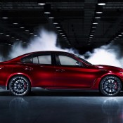 The Eau Rouge body work consists of extended wheel arches, carbon front spoiler which joins hands with the carbon side skirts and the carbon rear diffuser to create a nice two-tone effect, and a larger deck lid spoiler. The highlight of the car’s design is the rear diffuser unit which is styled to mimic the back of a F1 car, complete with a F1-style LED light unit in the middle. The wheels on this car are 21-inch big and finished in a dark color to match the lower part of the body and contrast with the chromized red of the body.