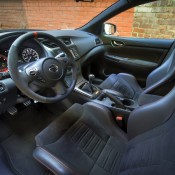 As for the interior, the mods include Recaro “Sportster” front seats with custom black leather and Alcantara, Alcatara rear seats and headliner, leather/Alcantara-wrapped steering wheel with red accents and matching gear and handbrake lever, and sports instruments.