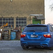 To make sure people will notice this is not ordinary E91 3er, MB Individual Cars then set about giving the car a visual makeover. They used modified versions of 1 series M front and rear bumpers, plus M side skirts, LCI bonnet, Blackline rear lamps, and M3 side mirrors.
