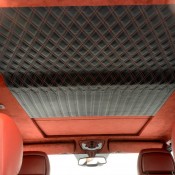 The interior features a two-tone red and black leather package contrast stitching and Brabus logo, illuminated side sills, leather headliner and floor mats, and sport steel pedals.
