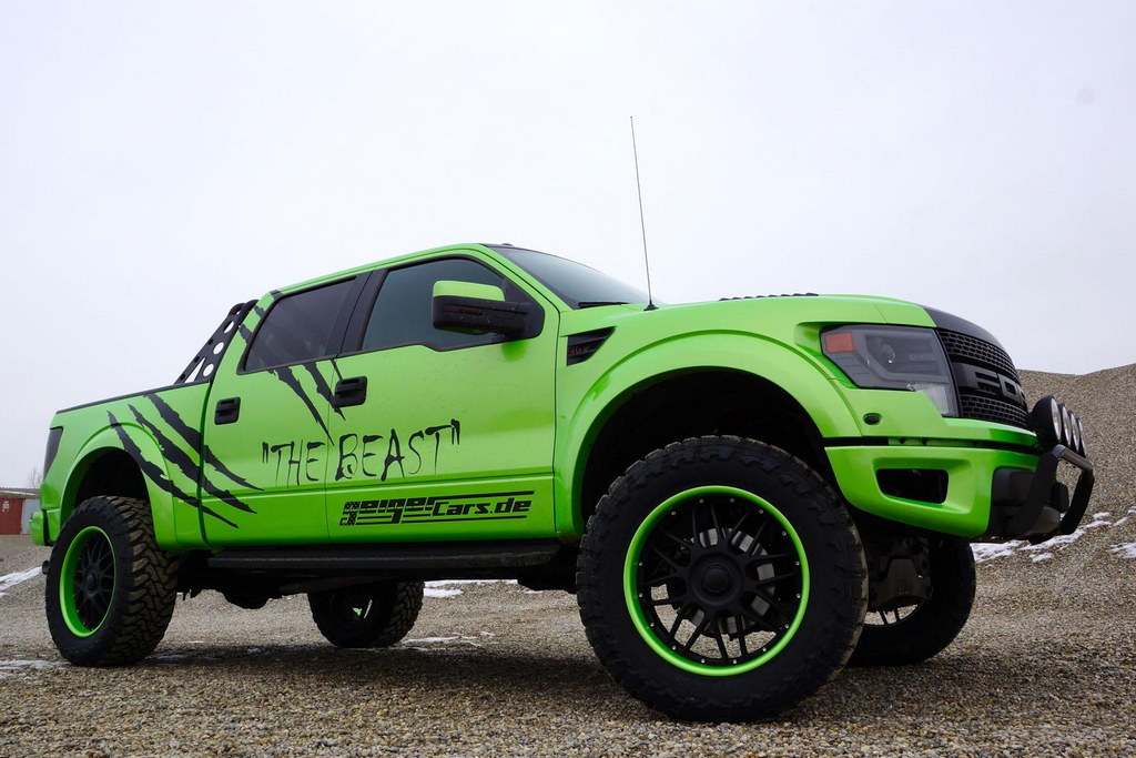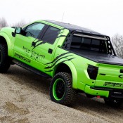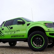 It would be a shame is Gieger left the appearances of The Beast untouched. So they gave it a visual makeover that lets everybody know it’s not an ordinary Raptor. The truck features a Poison Green paint job garnished with matte black graphics and accents, as well as some off-road bits and bobs such as fog lamps, underbody protection, running boards, roll cage, and above all, a set of 22-inch wheels wrapped with off-road tires and a suspension lift kit.