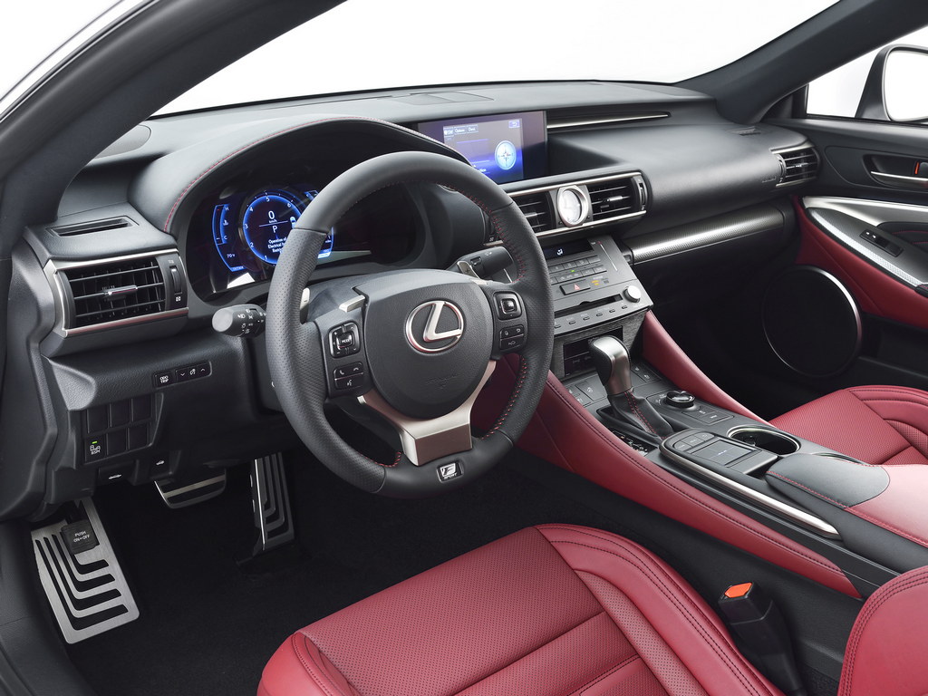 Powered by the same V6 engine developing 305 horsepower as the standard models, the Lexus RC 350 F-Sport is distinguished by the virtue of its bespoke styling kit, consisting of revised grilles and bumpers, blacked-out detailing, and new 19-inch wheels. But the beauty is more than just skin deep.