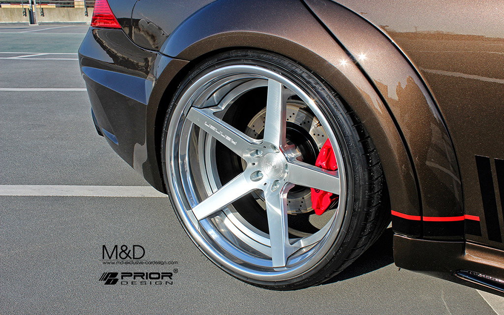 This is the result, and although it is completely brown, the package is actually called the Black Edition. What Prior Design has done here, and its rather clever, is use styling features of the newer model such as the front and rear bumpers and tailpipes to improve the old car. This way you get the best of both versions.