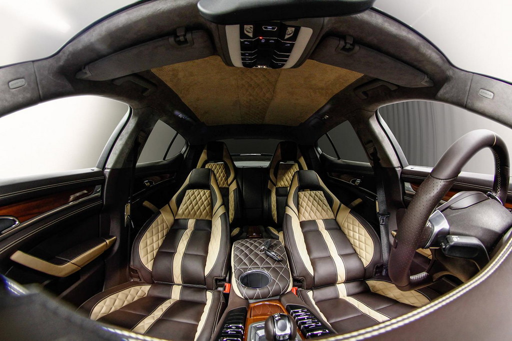 This particular Prior Design Porsche Panamera features 22-inch wheels, sport exhaust system, and KW suspension system. An interior treatment with two-tone leather upholstery and sport steering wheel is also included.