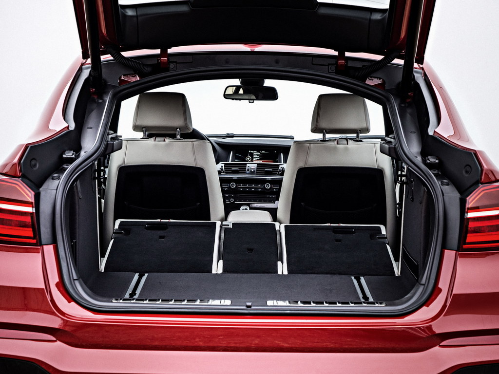 Now, those of you have seen the inside of the BMW X6 and how cramped it is at the back, are probably wondering at this point what’s life going to be at the back of the X4, which is significantly smaller. The short answer is pretty bad. But BMW offers a new rear seat bench for the X4 with space for three, which comes with the type of continuously moulded side bolsters normally only provided by two individual seats. Load capacity is between 17.7- 49.4 cu. ft. (500–1,400 liters).
