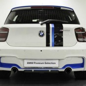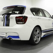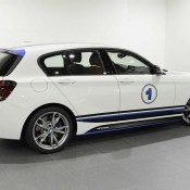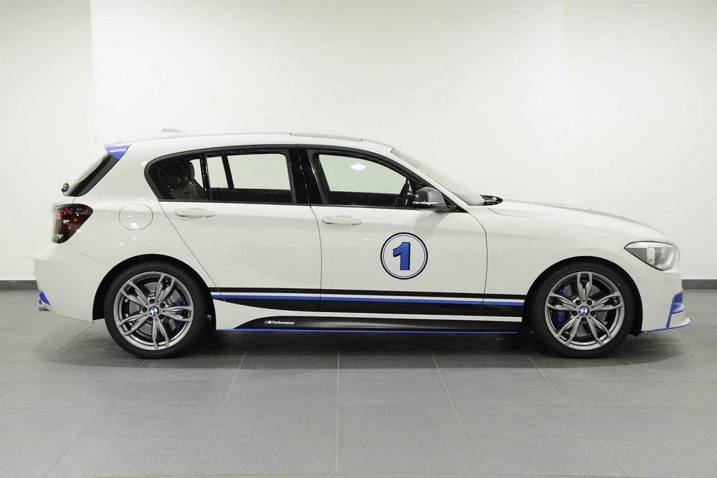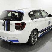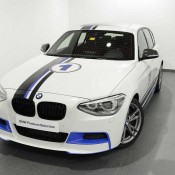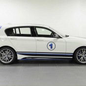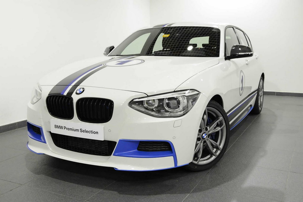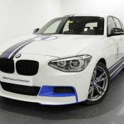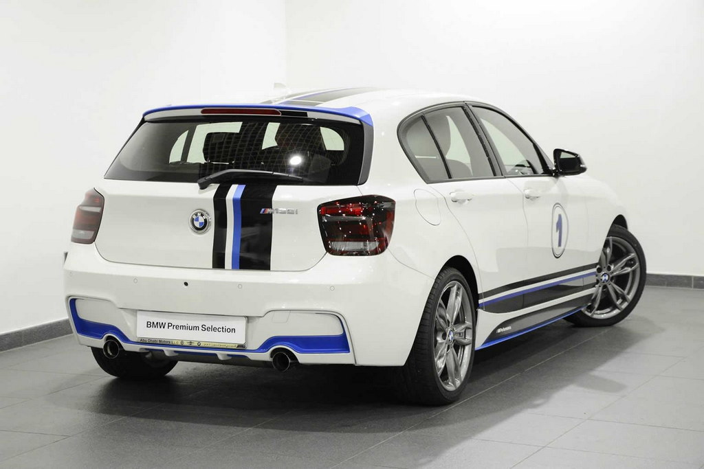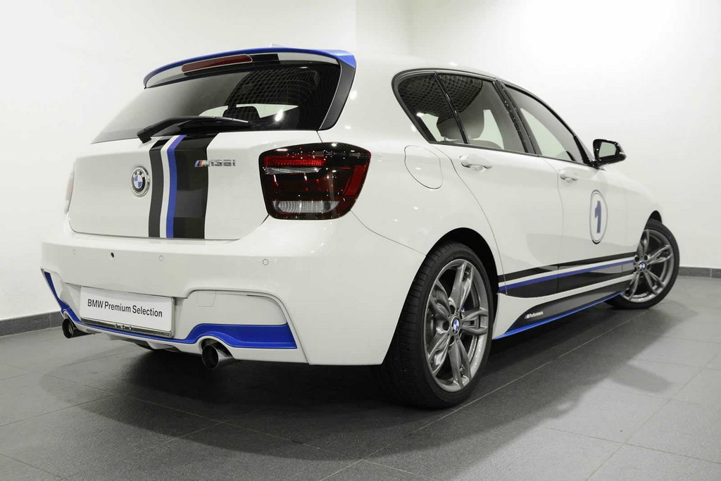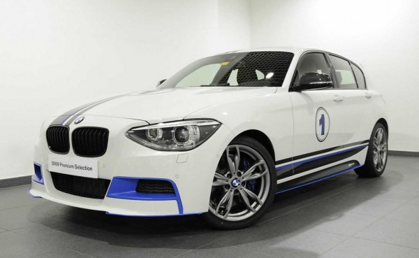 This new special edition BMW M135i appears to be done by someone with a much finer taste than the man who did the previous car. Instead of stupid orange stripes and checkered flag patterns, this one gets a sober white color, garnished with light blue and gloss black accents and stripes.