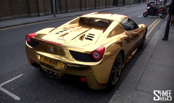 Mission accomplished – Azzawi’s gold Ferrari 458 Spider iss certainly one of the most attention-grabbing cars in London. But is it good attention? I mean what do you think when you see a man driving around in a gold-wrapped car? Do you respect him more because of it, or do you murmur some not very nice things under your breath?