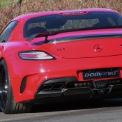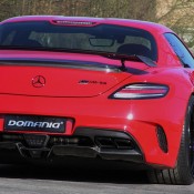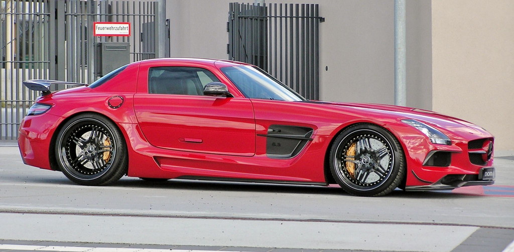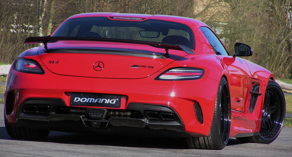 Domanig Mercedes SLS Black differs from the standard car in two major ways: suspension and power output. The standard Black SLS features a body made largely from carbon fiber, so it’s light, and it has spot on aerodynamics and luxury features. So the tuner decided to focus on things they could change for the better.