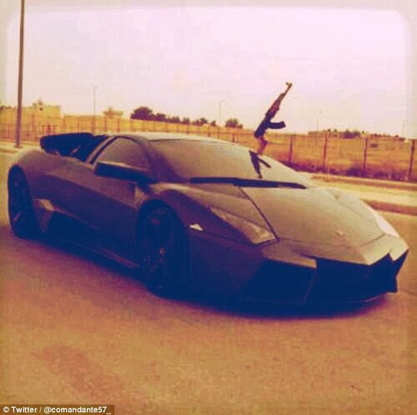 The enforcer for the Sinaloa cartel’s Twitter page showed him hanging his gold AK-47 out of his black Lamborghini’s window. He even revealed custom trainers with his Twitter handle on them, plus another gold-plated gun with Scarface’s infamous quote, ‘The World Is Yours’ engraved onto the barrel.