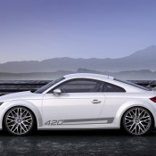 In order to contain the fury of the world’s most powerful production 2.0 liter engine, the Audi TT Quattro Sport is fitted with a special traction control, wheel-selective torque control, and a massive body kit consisting of carbon fiber splitter and diffuser, rear wing, wider sills and wider fender to accommodate the 20-inch wheels.