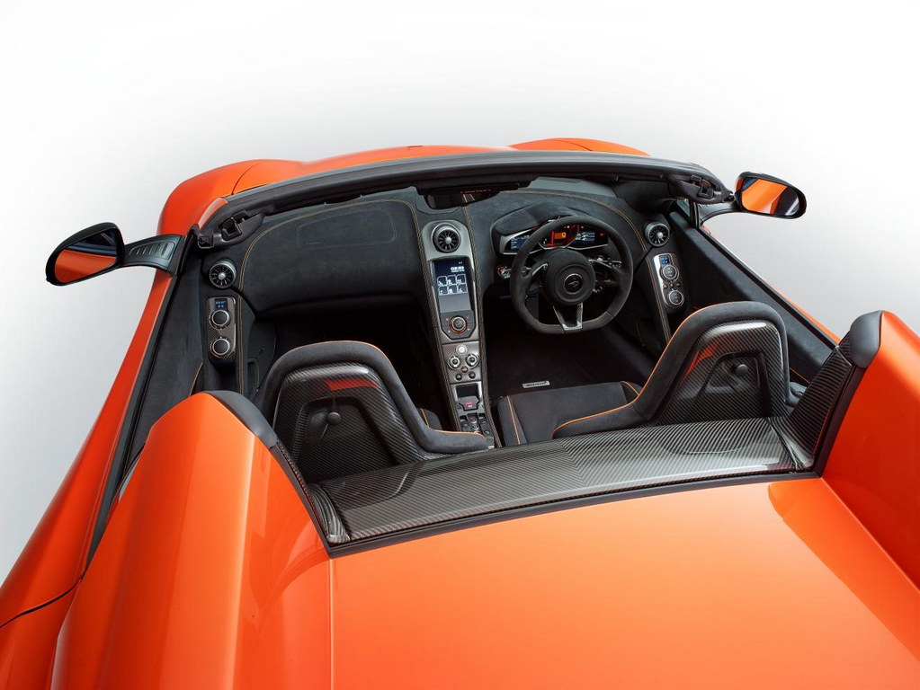 The Spider introduces a new color to the McLaren Collection called Tarocco Orange AkzoNobel. And that’s about it for the new things. The rest of the car is identical to the 650S Coupe, except for the weight. The Spider weighs 1,370 kg, which is 40 kg heavier than the coupe.