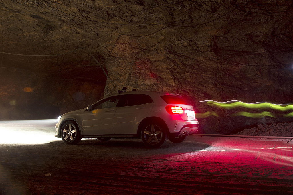 Mercedes GLA salt mine challenge marks the beginning of a potentially successful career for the car in the UK. The car is now on sale with prices starting from £25,080 OTR for the GLA 200 CDI. Below you will find photographs of the GLA wrestling the mine’s twists and turns.