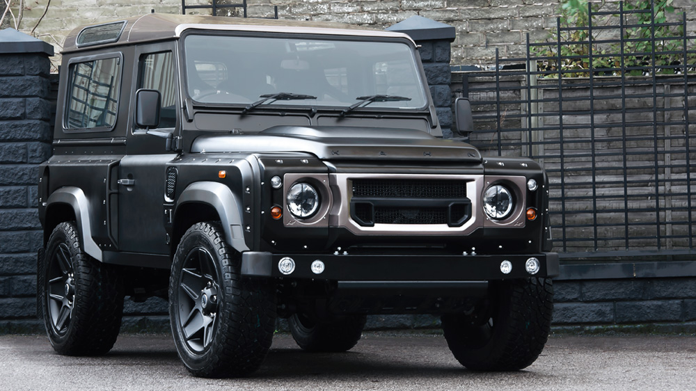 Finished in black and featuring an X-Lander grille which can be done, along with the roof, in a color of your choice, Kahn Design Defender SW 90 gets a thorough treatment beginning with a visual kit consisting of front and rear wide wings with integrated vents and bolt apertures, and continuing with Kahn six speed automatic gearbox conversion.