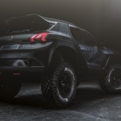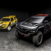 Peugeot 2008 DKR is inspired in many ways by the 208 T16 Pikes Peak. The success of that model gave Peugeot the confidence to accept bigger challenges, and the bold engineering of it inspired the concept behind the 2008 DKR.