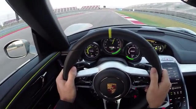 The driver, Porsche Works Driver Patrick Long, test the 918 thoroughly as he exits pit lane under all-electric mode, accelerates under sport hybrid mode, and uses the hot-lap button on the back straight at 170 mph. This is a POV video, which means you get a first-hand look at what life is like behind the wheel of a 918: