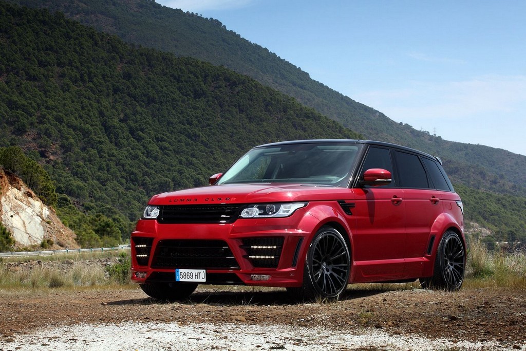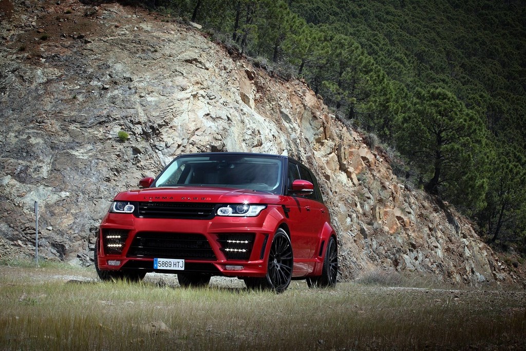 Lumma Range Rover Sport styling kit adds revised front and rear bumpers to the British SUV, complete with new LED lighting, large air intakes, mesh grille, fog lamps, lip spoiler, and rear diffuser. It also includes a sports grille, side skirts, roof spoiler, and no less than four big tailpipes.
