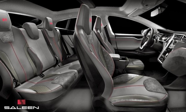 As for the interior, the Tesla Model S by Saleen will be getting new leather upholstery with Alcantara inserts and red stitching. Alcantara is also used to cover the dashboard. Other details include carbon ceramic brakes, Saleen wheels, carbon fiber decklid trim, and a new paint called Orange County Orange. The car will get mechanical upgrades as well, details of which are yet to be released.