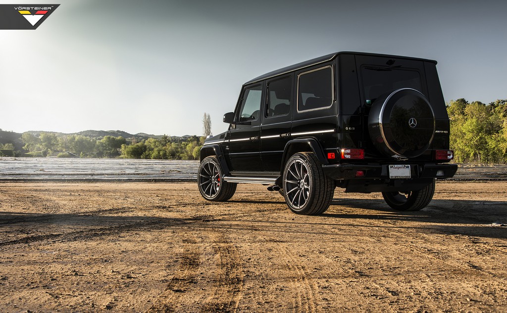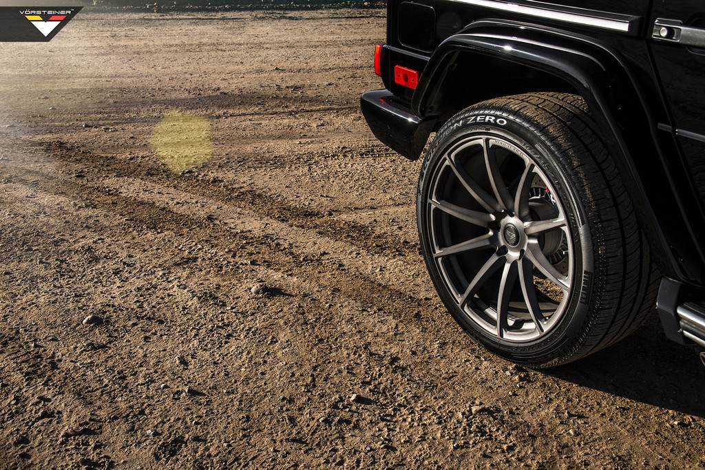 American tuner Vorsteiner has started a new project based on the Mercedes G63 AMG. The work is just beginning on the mighty Gelandewagen, but they decided to release a few pictures of the car wearing its new shoes to wet our appetite. Later on they will also make a body kit for the car.