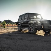 The wheels on Vorsteiner Mercedes G63 AMG are the tuner’s own Sport Race Forged VSR-163 model in size 22×12-inch all around. They are finished in a matte brushed shadow which contrasts with complements the exterior finish and makes the red brake calipers pop.