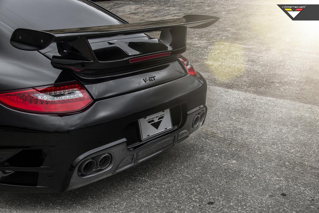 This new version of Vorsteiner Porsche 997 Turbo kit, finished in a menacing black, consists of revised bumpers featuring a massive chin spoiler at the front and an awesome rear diffuser that envelops the tailpipes. You also get new side skirts, a larger rear wing, and extra carbon fiber air vents. The tuner suggests its own set of 20-inch forged alloy wheels as the perfect finish for the program.