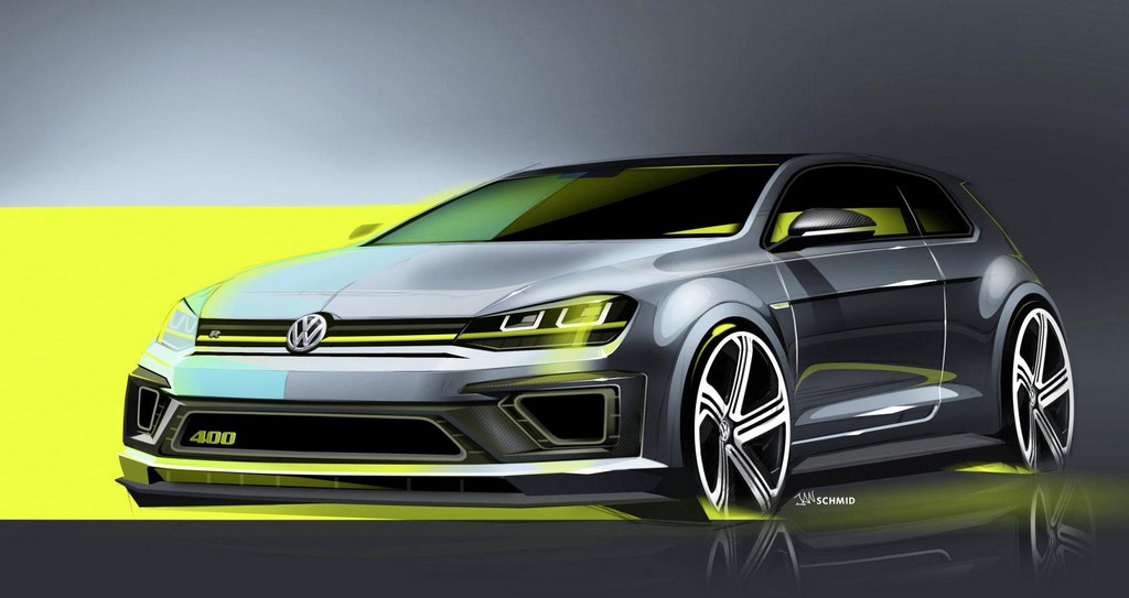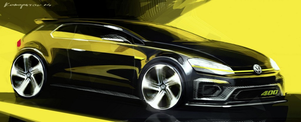 Volkswagen released the first details and design sketches of a new Golf-based concept car, set for debut at the 2014 Beijing Auto Show. The Golf R 400 Concept, as it’s called, is an extreme take on the existing Golf R with 100 extra horsepower and a motorsport inspired body.