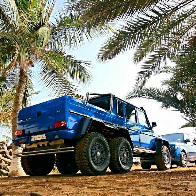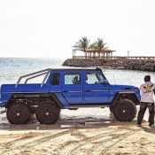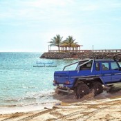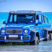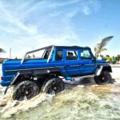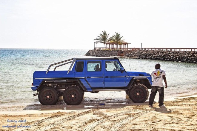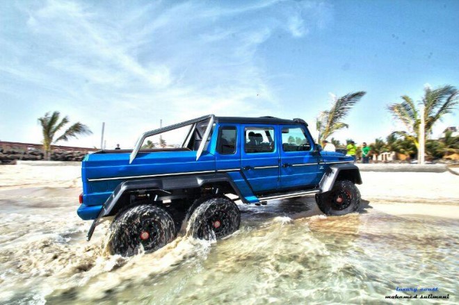 So far all G63 AMG 6×6 examples we’ve seen were either white or a dark color like grey or black. So it is quite refreshing to see one in a more vibrant color. This blue Mercedes G63 AMG 6×6 has recently been delivered to its customer in Saudi Arabia who immediately took it to the sea for some skinny dipping.