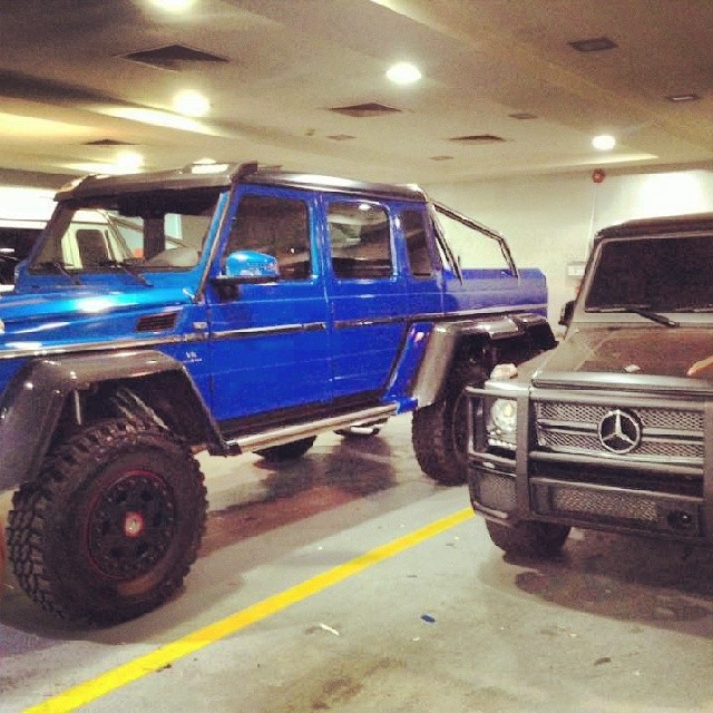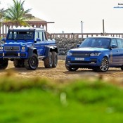 The owner of this blue Mercedes G63 AMG 6×6 also has a blue Range Rover which you can see in the pictures. Comparing the two will give you an idea of the sheer size of the 6×6. The Range Rover is huge vehicle by any standards, but the Merc is in a class of its own.