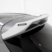 On the sides the only thing that draws your attention is a side skirt modeled on the front spoiler. But around the back we have the add-on part mimicking a diffuser with a quad tailpipe system. Brabus has also designed a very cool roof spoiler for the GLA which fits on top of the stock unit.