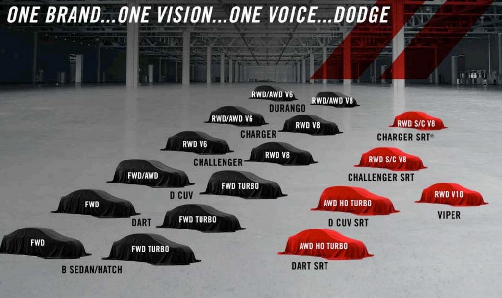 The new plan also calls for the launch of Dodge Dart SRT, a sporty version of the compact sedan powered by a high-output four-cylinder turbo engine and boasting all-wheel-drive. You can also count on revised styling thanks to a SRT styling kit. Dodge is confident the SRT version will give the Dart a whole new image.