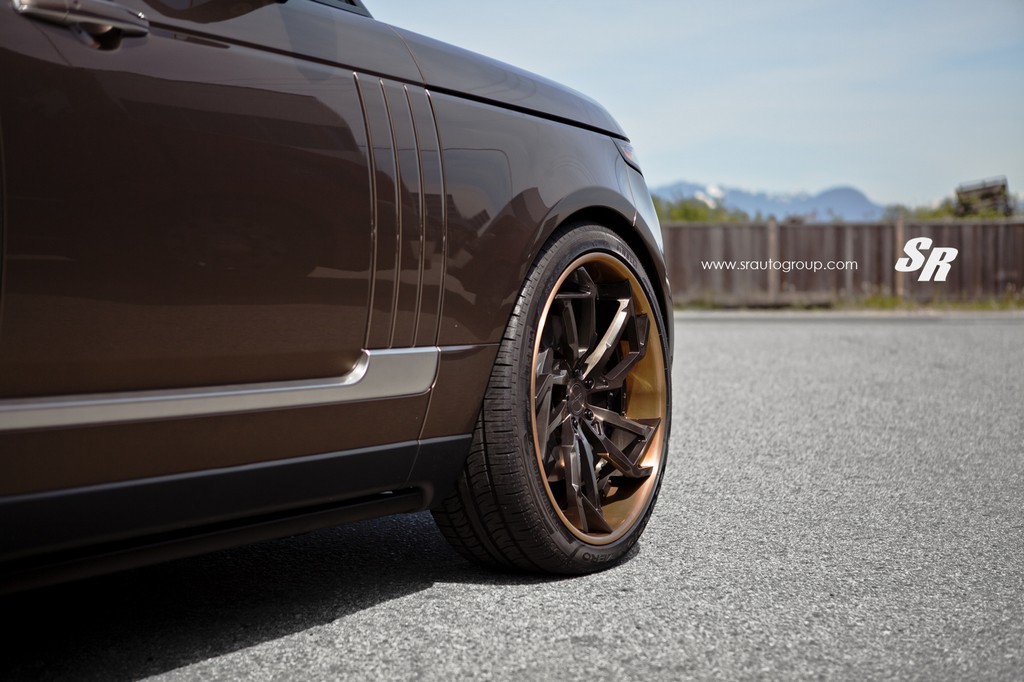 SR’s Hazelnut Brown Range Rover Vogue gets a set of PUR LX12 wheels in size 24×10 inch all around. The size and the finish of the set is the result of some serious brainstorming, according to SR Auto, and they think they have arrived at something that results in a “unified cohesive bond between the wheels and the car.”