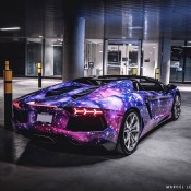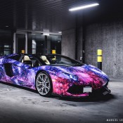 When Arabs think of a unique wrap, it’s usually gold. When Americans think about it, the color of choice is matte black. The Germans like gunmetal grey, and the Chinese are big fans of pink. The Canadians, well, turns out they are complicated. This is their idea of a unique wrap for a unique car: a galaxy-themed Lamborghini Aventador Roadster.
