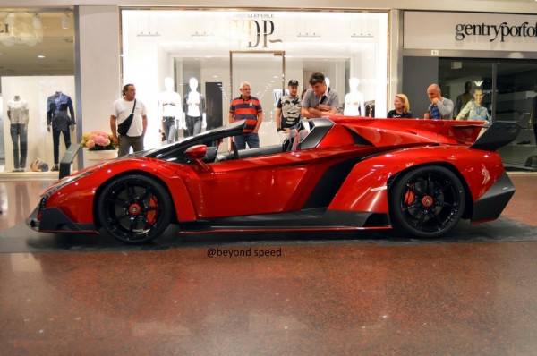 Veneno Roadster in mall 2 600x398 at Lamborghini Veneno Roadster in a Shopping Mall!