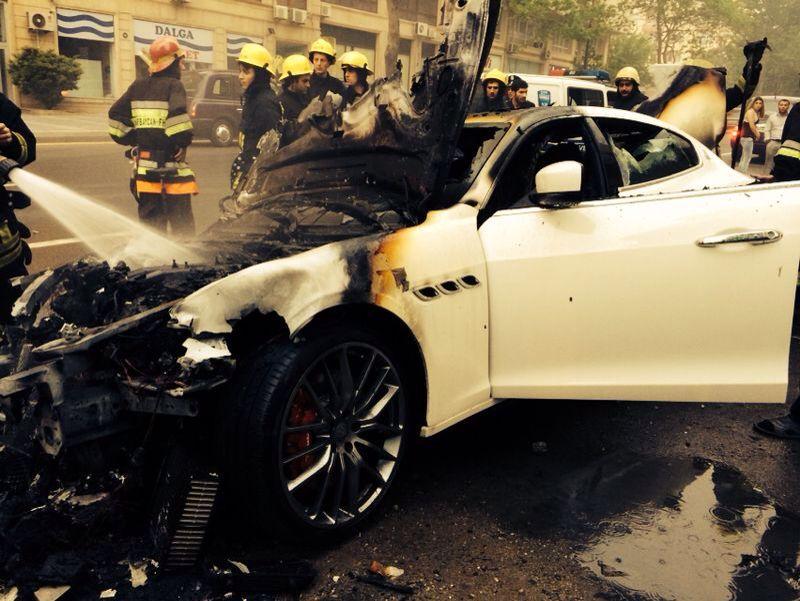 This time the victim of self-combustion is a brand-new Maserati Quattroporte GTS which burned to the ground on the streets of Baku, Azerbaijan. Now, we say it was a fire, but given the state of it, the car appears to have been hit by an RPG or something. It is absolutely ruined.