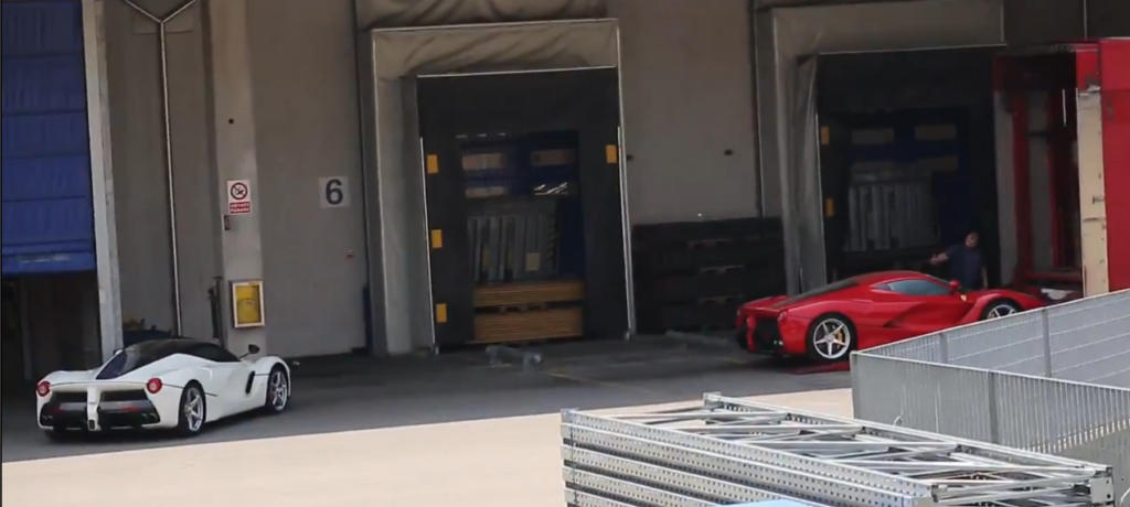 A pair of Ferrari LaFerrari hyper cars was spotted yesterday in Maranello being loaded into a delivery truck. One of them was a unique white LaFerrari with black roof, the first two-tone LaFerrari ever and possibly the coolest example of the car we’ve hitherto seen.
