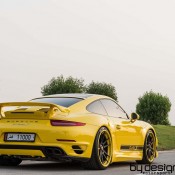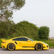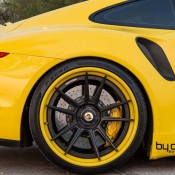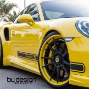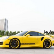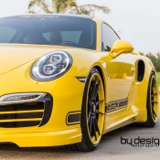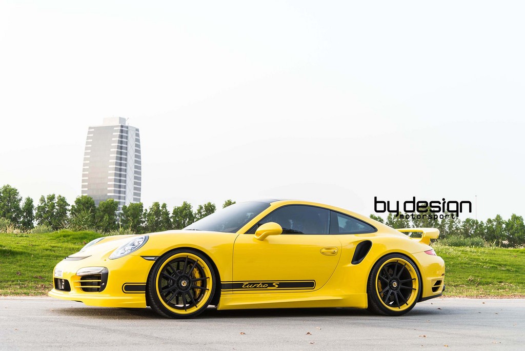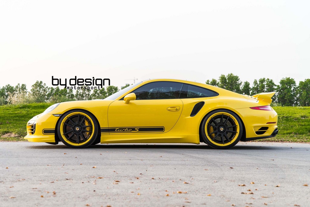 ByDesign Porsche 991 Turbo S is finished in bright yellow and decorated with black accents and graphics. It may sound like a bit of a stretch, but the paint scheme on this car reminds us of the original Carrera 2.7 RS.