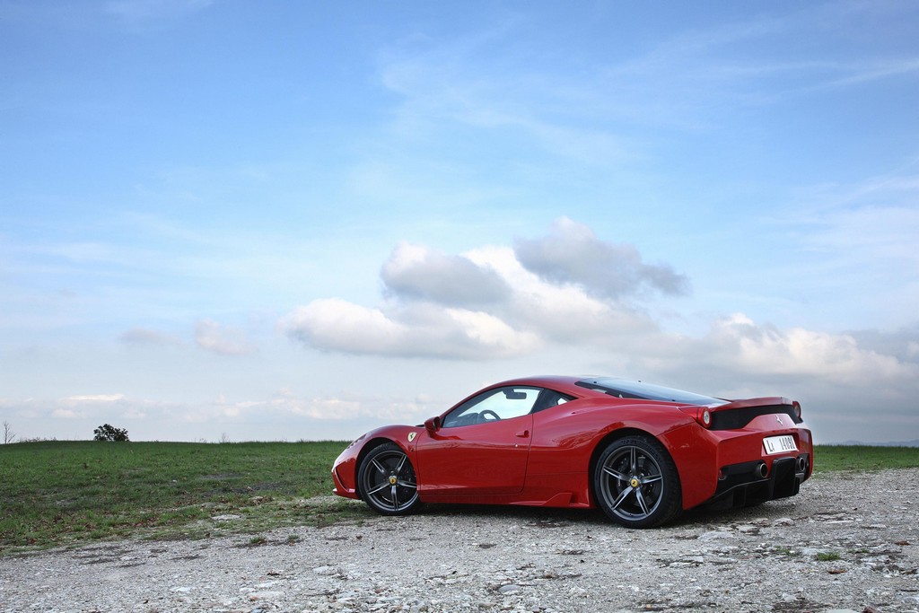 The 458 Speciale is the hotted-top, track-focused version of the 458 Italia powered by a 600 horsepower version of the same engine, and featuring a new system that helps you pull off perfect drifts and look like a hero. It accelerates from 0 to 60 mph in 3 seconds dead.