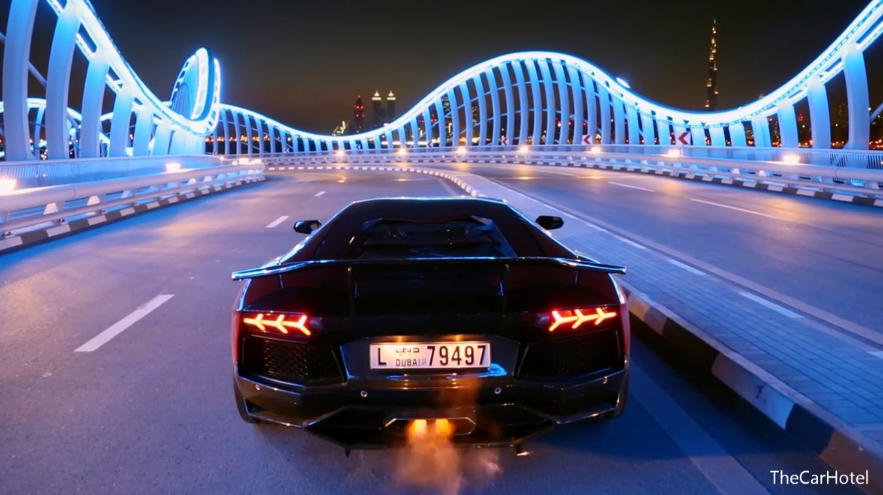 This DMC Aventador LP900 is a limited edition version sent to Dubai. Here, in the middle of the night, on an awesome-looking empty highway, the car has a chance to clear its throats and let out a few bursts of flames: