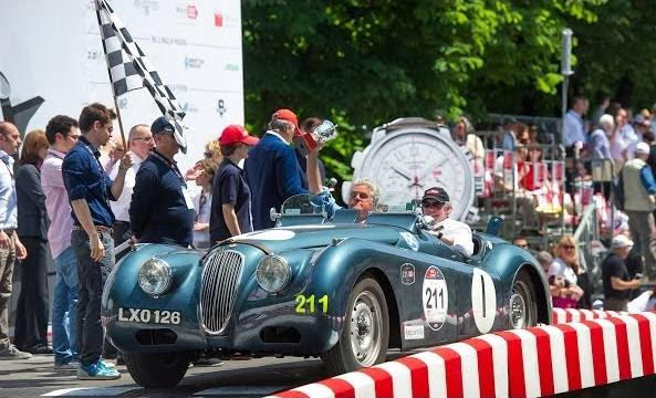 The car driven by Jay Leno in 2014 Mille Miglia was a 1951 Jaguar XK120 which he shared Jaguar’s chief designer Ian Callum.